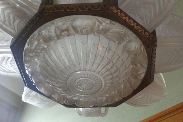 Design Design Art Deco Luchter Deze oude art deco luster is al jarenlang in familiebezit; diameter een goede meter. naar mondelinge overlevering frans van oorsprong, en sommige glazen zouden genummerd kunnen zijn. is in zeer goede toestand