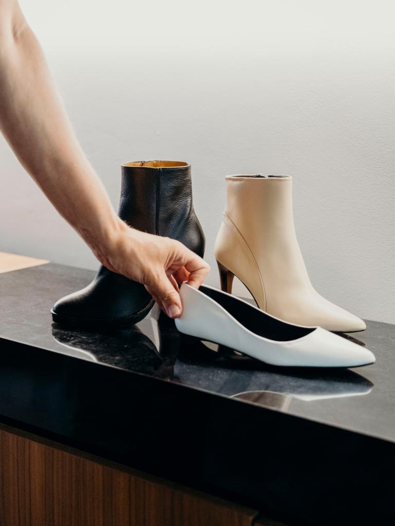 ‘Ik kom niet uit een familie van schoenontwerpers, maar wil wel dat mijn merk aanvoelt als een huis dat al generaties meegaat. Onlangs vroeg iemand of ik het atelier van mijn ouders had overgenomen. Dat vond ik een mooi compliment.’