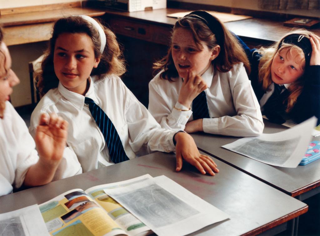 Coming of age – dat bekt iets beter dan identiteitsvorming – is een rode draad door de tentoonstelling, vertelt De Wyngaert. ‘Het gaat zo snel, lichamelijk en mentaal. We hebben een aantal geweldige fotoreeksen rond dat thema. Zo volgde de fotograaf Nancy Honey (zie de foto’s op deze pagina’s, red.) haar dochter, nichtje en andere meisjes op verschillende scholen tussen de leeftijd van elf en veertien jaar. In die drie jaar evolueren ze van kinderen naar jongvolwassenen, een cruciale periode in hoe ze zichzelf en hun toekomst zien.’