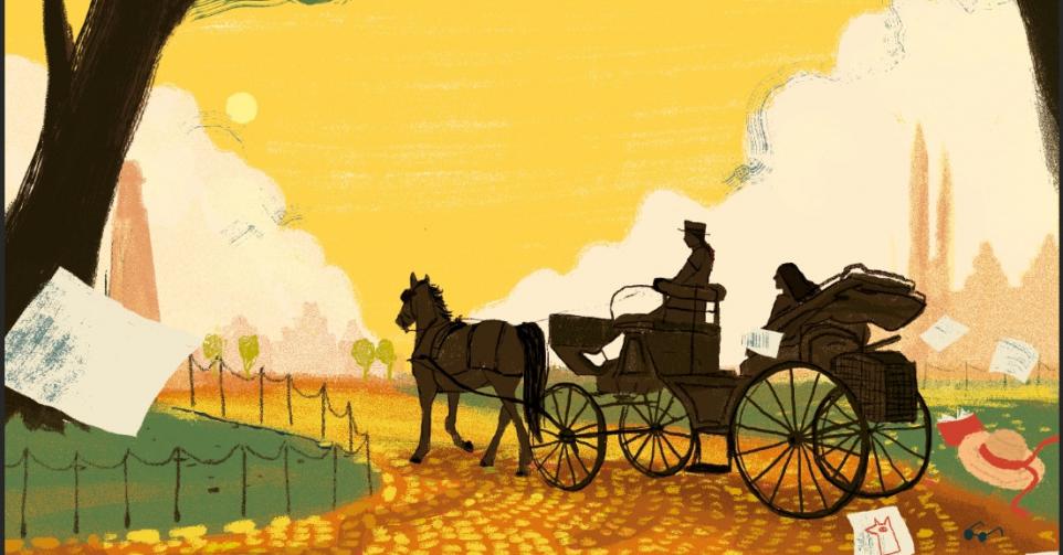 Ik weet niet goed of bij de koetsen dezelfde regel geldt als bij de taxi: moet je de eerste in de rij nemen? Of mag ik een paard naar voorkeur aanwijzen? De keuze wordt voor mij gemaakt. Een blonde koetsier met een strooien hoedje op wenkt me met haar zweep. Ik stap bij haar in. Ze heeft een warme stem. Op haar schoot ligt een geruite deken en een slapende hond. Als ze achteloos haar prijs noemt, val ik bijna uit het rijtuig.