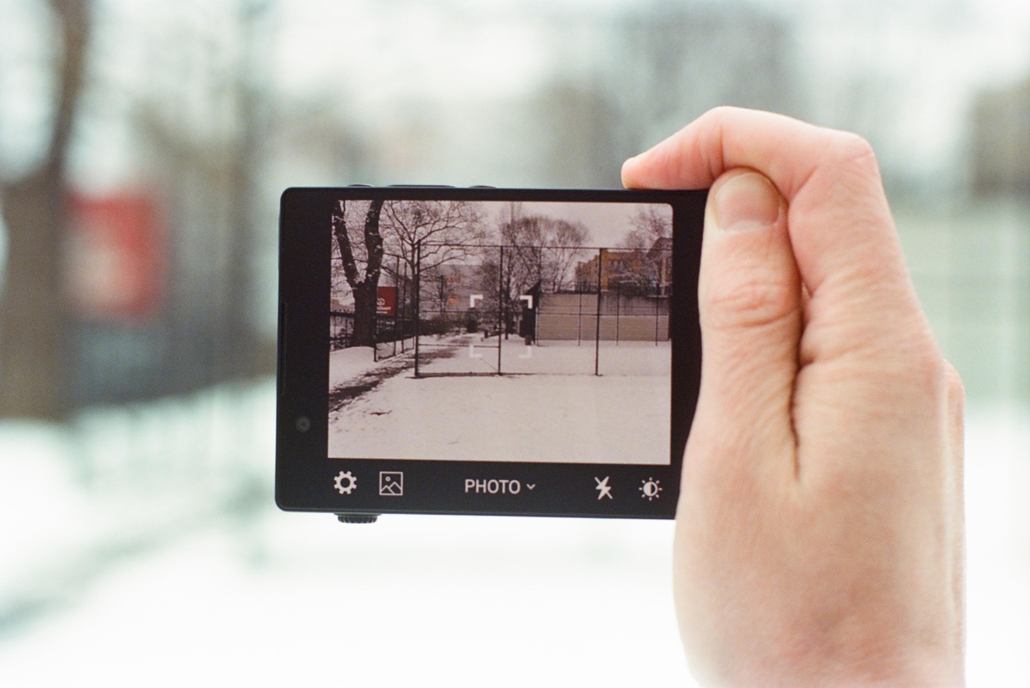 Joe Hollier: ‘De basics. Je kan bellen, sms’en, een wekker zetten, notities maken, muziek beluisteren en foto’s nemen. Er zit navigatie op en een simpele camera, en we werken aan to-dolijsten. We hebben alles bewust minimaal gehouden. We hebben nooit geprobeerd de iPhone-camera te evenaren. Onze camera is eerder nostalgisch, zoals een oude digitale compactcamera. Dat maakt het leuk, bijna speels. Het is een tool die je gebruikt, zonder dat je erin verdwijnt.’