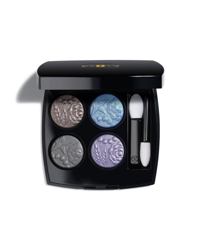 Een oogschaduwpalet gemaakt door de Chanel Make-up Creation Studio en Cécile Paravina, geïnspireerd op het mysterie van de nacht, met vier tinten: zilverkleurig donkerviolet, een parelmoerblauwe highlighter, mat blauwgrijs en satijnachtig lavendel.