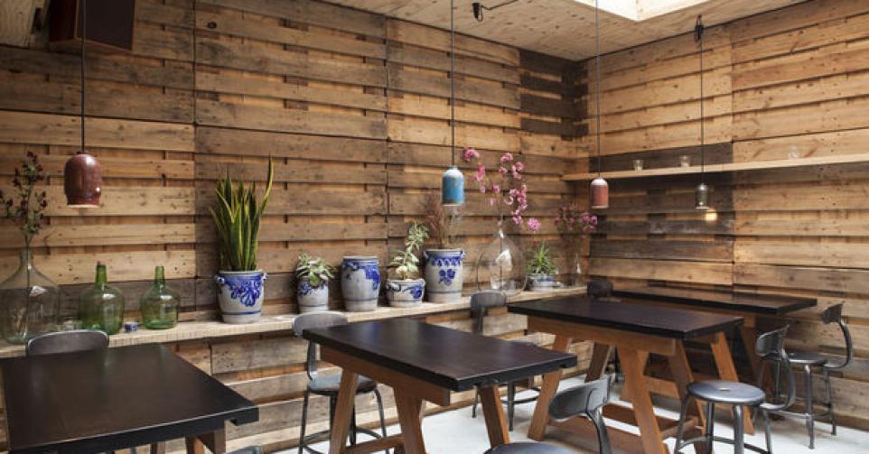 Voor de lunch vermeldt het schoolbord aan de ingang dagelijks twee verse soepen, een groenteschotel en een stoofgerecht. Als afsluiters zijn er diverse smaken ijsthee of zelfgemaakte desserts. U kunt de gerechten meenemen, maar ze smaken uiteraard heerlijk in het volledig van pallethout gemaakte interieur, een creatie van Frédéric Nicolay. In de zomer is het dakterras open: trendy smullen op hoog niveau.