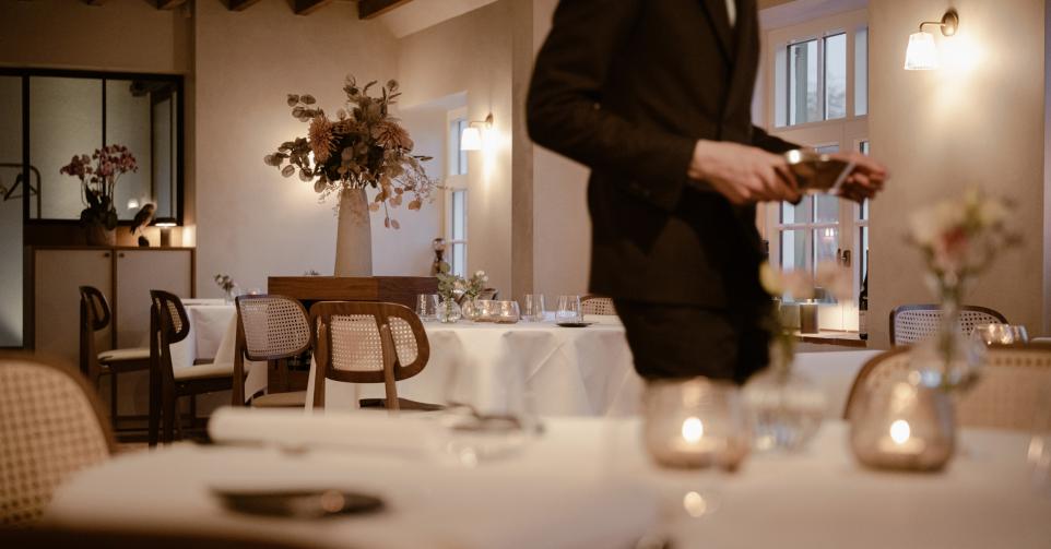 Wanneer we aankomen, zien we een erg sober interieur dat toch luxueus aanvoelt, een wijnkast met enkele grote namen en bediening volgens de regels van de kunst, elegant maatpak incluis. Op de kaart nog meer kleinschaligheid en klassieke keuzes: slechts twaalf gerechten, maar stuk voor stuk zinnenprikkelend en bijzonder uitnodigend. De toastjes met kippenleverparfait en een hapje met hopscheuten en handgepelde grijze garnaal zetten meteen de toon. Sobere bereidingen die verdomd goed smaken, mede dankzij de gulle afwerking met boter en zout.