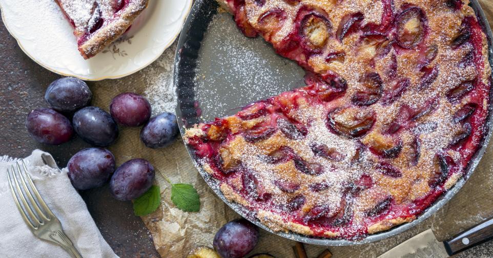 - Bak de pruimentaart 30 minuten op 200°C, tot de randen goudbruin zijn.