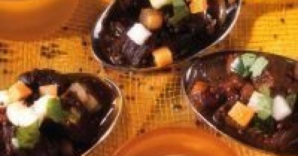 De ragout van ree wordt gegaard in rode wijn. Zorg ervoor dat de wijn goed inkookt, want dat is een absolute voorwaarde om de subtiele parfums van dit gerecht te bewaren.