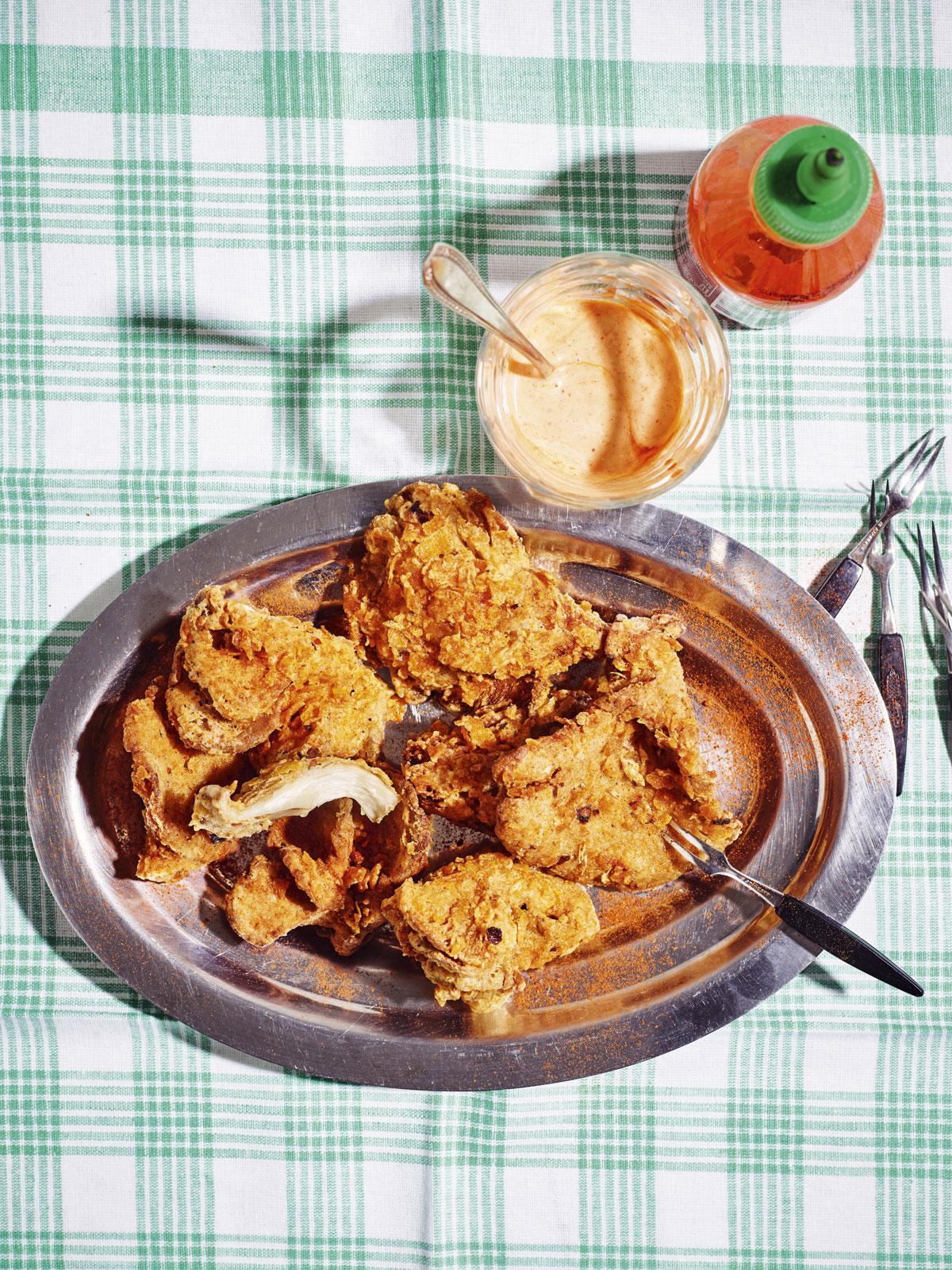 1. Gefrituurde artisjok met geroosterde-knoflookaioli