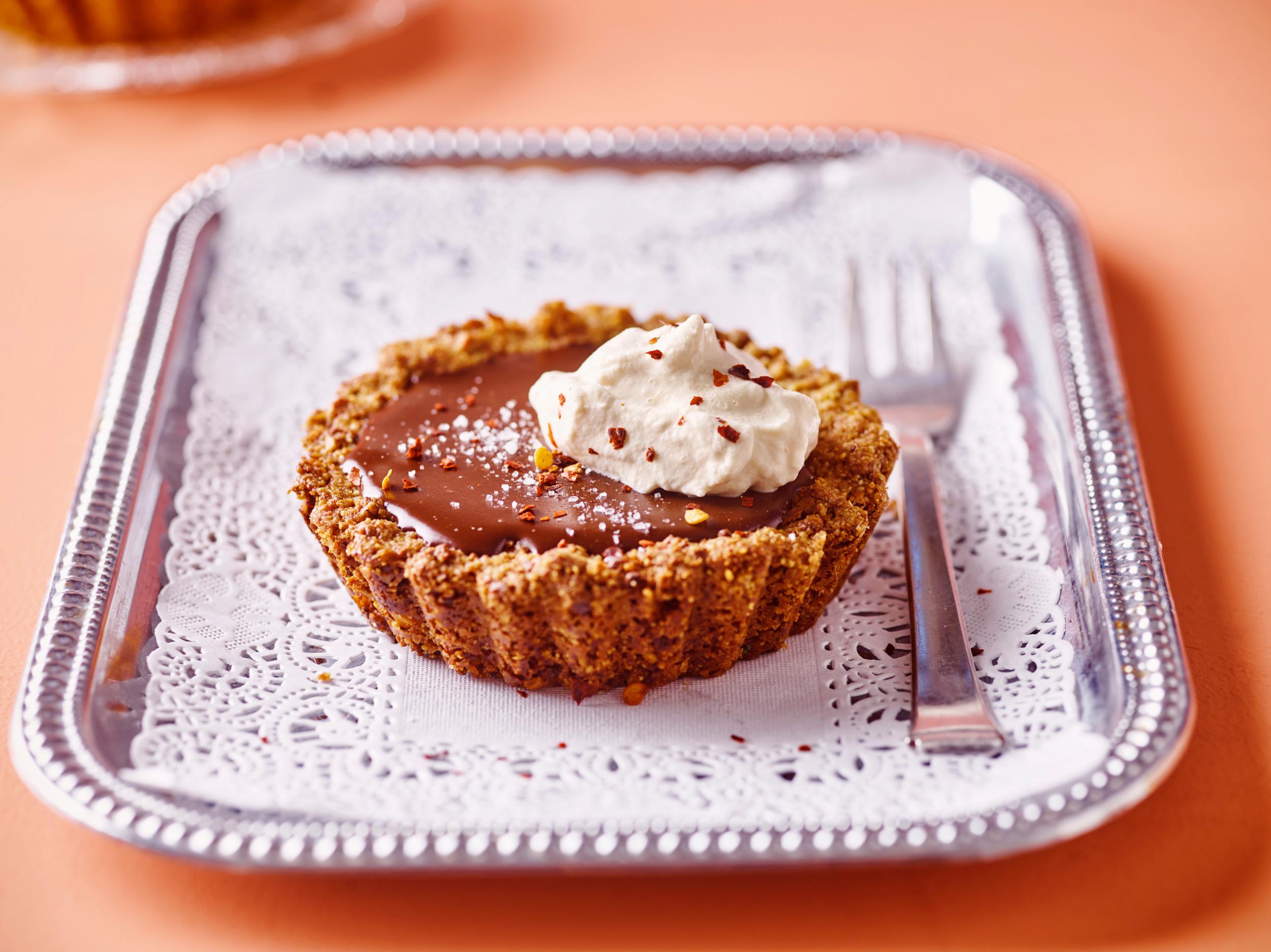 Vergeet de Dubai-reep. Organiseer je een feest, een romantisch diner of heb je gewoon heel veel zin in chocolade, dan is dit chocoladetaartje met pikante kick net wat je nodig hebt. Tip: ook hier mag je variëren met de ingrediënten.