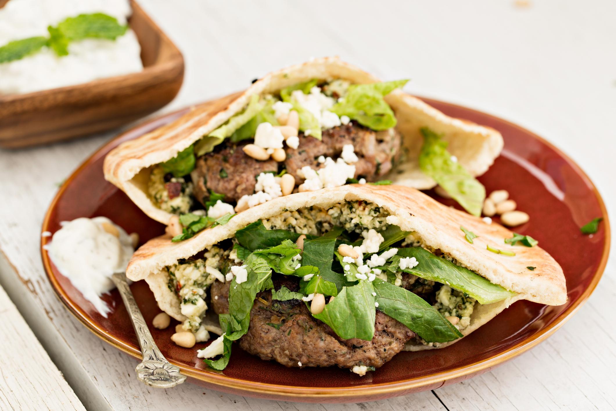 10. Lamsburgers met pistachenoten, feta en rode-bietentzatziki