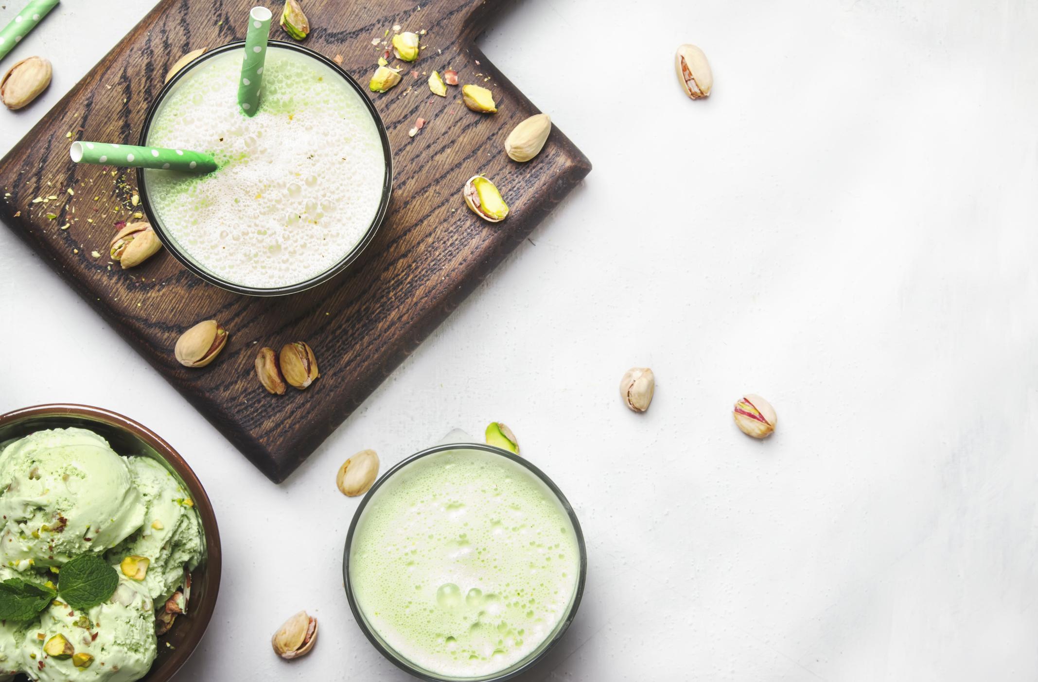 Twee bollen pistache-ijs en de mixer erin? Niets is minder waar: deze milkshake maak je door echte pistaches te blenden met melk en vanille-ijs. Extra fotogeniek met frisse ananas als afwerking.