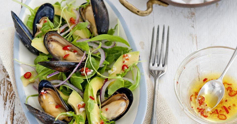 Het Nederlands Mosselbureau staat in voor de promotie van de Zeeuwse mossel. Ze verzamelden enkele toprecepten – zoals deze avocadosalade met mosselen – in een kookboek. En wie valt er nu niet voor dit bordje?