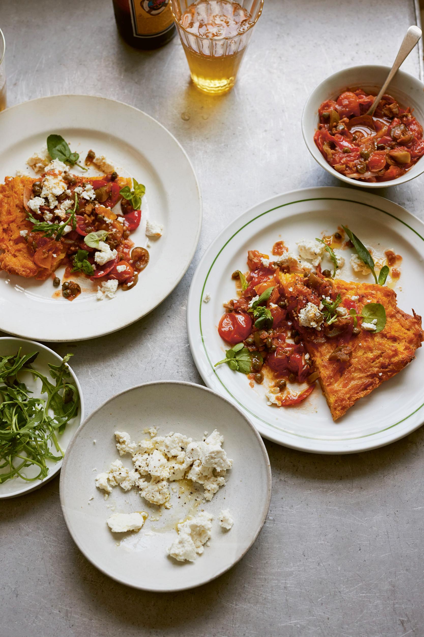 In deze pompoencecina brengt chef Anna Jones het beste van twee werelden samen: ‘Cecina is een Toscaans platbrood van kikkererwtenmeel. De chutney is geïnspireerd op de Mexicaanse Veracruz-saus, heerlijk om op te vegen met de cecina.’