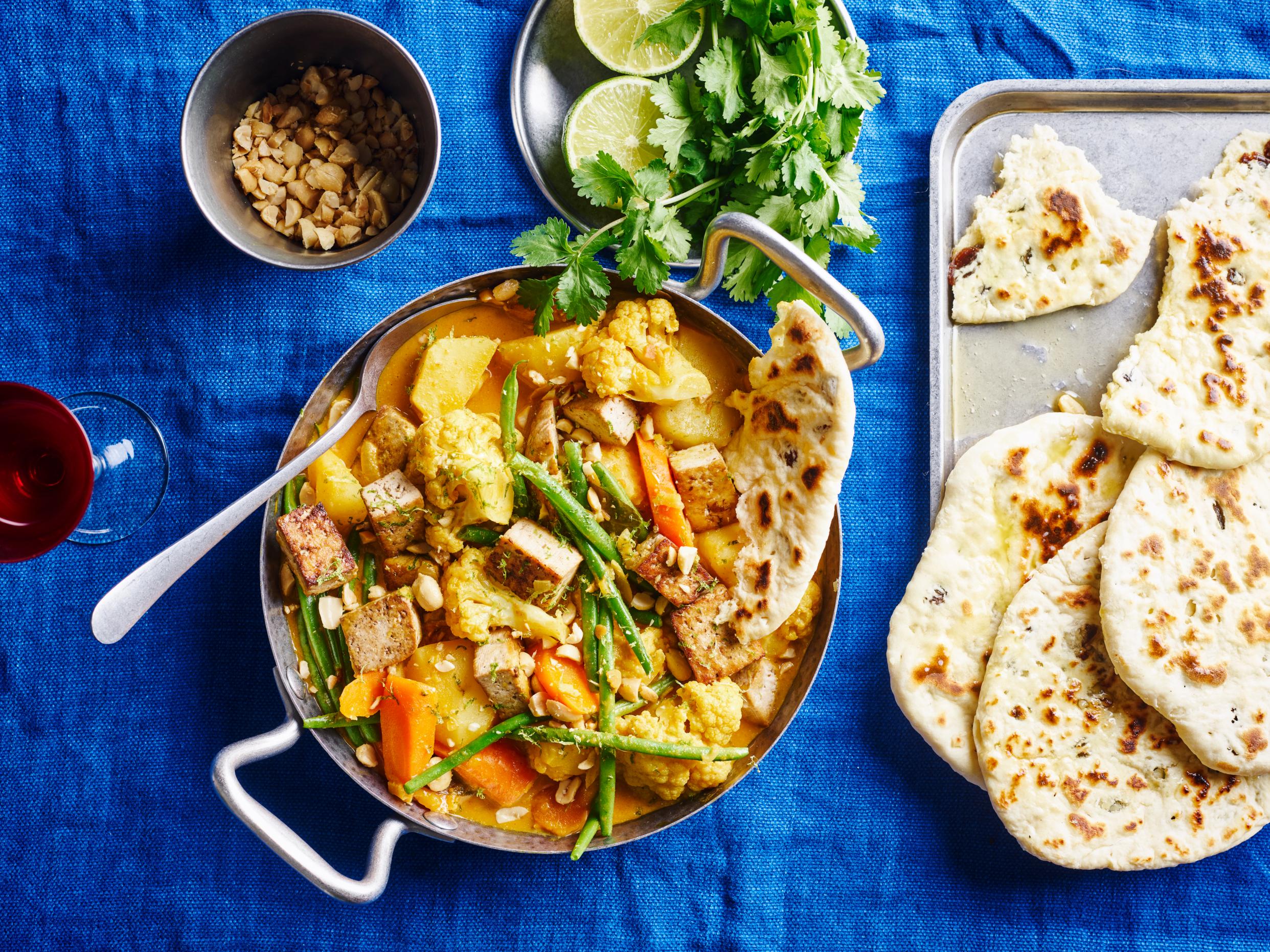 4. Vegetarische curry met tofoe en versgebakken naan