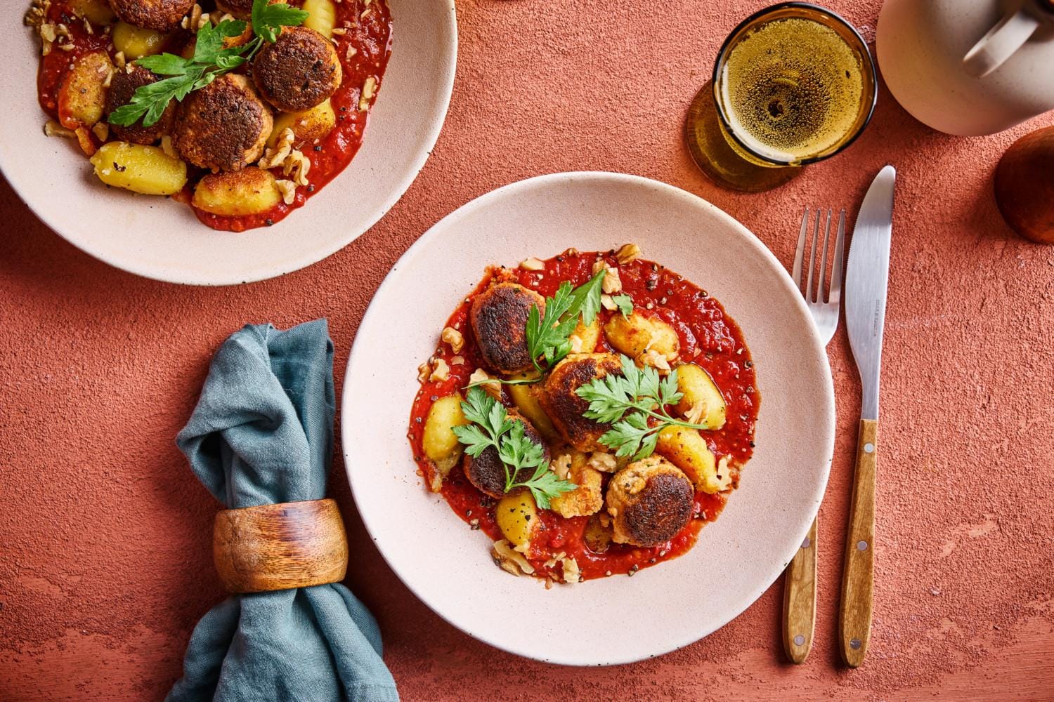 8. Tofuballetjes met gnocchi en muhammara-tomatensaus