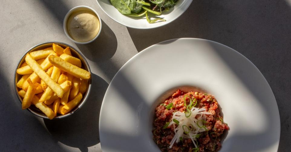 De transformatie van buurtcafé tot hippe eetplek zorgde voor een kleine schok in de wijk aan Berchem Station. ‘De Stanny’ was een begrip voor jong en oud en zorgde voor veel gezelligheid en verbinding in de buurt. Gelukkig brengt Café Service een sfeer die niet veel van die oorspronkelijke kroeg afwijkt, maar met een andere invulling van de keuken. Op de kaart vind je eenvoudige gerechten als oesters, huisgemaakte kroketten en charcuterie, maar ook volwaardigere gerechten als gevulde pasta of mosseltjes in rijke jus. Een versie van de steak tartare heeft een vaste stek op de menukaart van deze buurtbistro. Geen vast recept, maar naargelang het aanbod wordt er gewisseld tussen rund, kalf en zelfs lamsvlees.