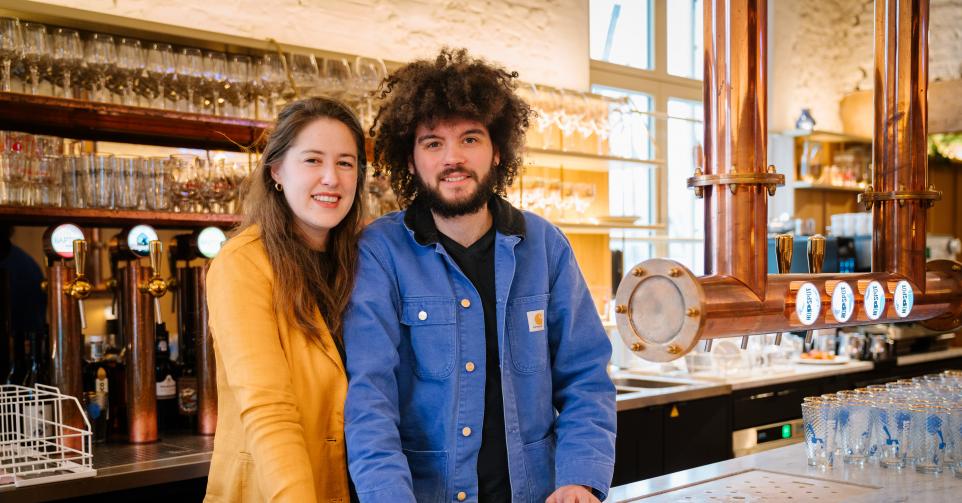 Zaakvoerders: Lorenzo De Block (32) en Sophie Cornelis (31) baten de zaak uit, Jef Versele en Theresa Deroose zijn de eigenaars van Hopspot en van Brouwerij Van Steenberge.
