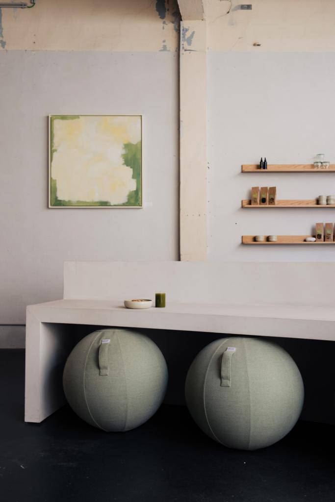Met haar studio Peelvrouw nam de designer onder meer het interieur van slowdownclub Oaas onder handen. ‘Deze koffie- en lunchzaak moest een echte oase worden, een plek waar je een moment voor jezelf kunt nemen en de prikkels van de stad achter je kunt laten. We hebben de ruimte bewust opgedeeld, zodat je je stemming kunt kiezen. Er zijn tafeltjes voor gezelschappen, gezellige hoekjes en zelfs zitballen voor wie alleen is. Het kleurgebruik is sereen en de materialen hoofdzakelijk natuurlijk, ook daarmee wilden we een meer ontspannen en rustgevend gevoel oproepen.’