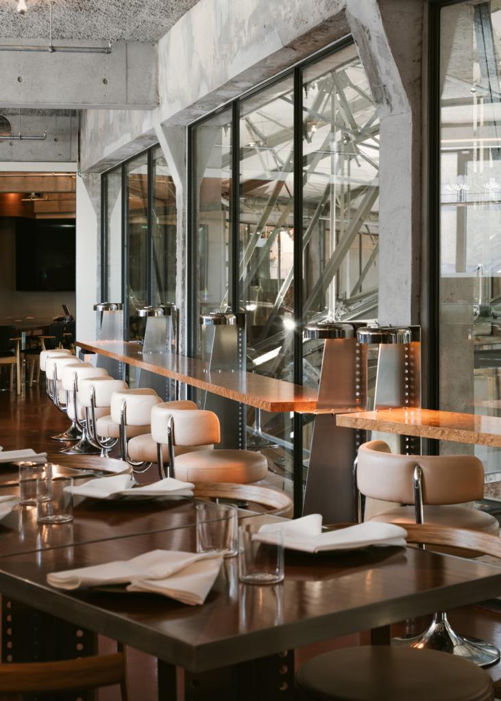 ‘Bij het inrichten van restaurant Tribune op de bovenste verdieping van het Gentse Wintercircus hielden we rekening met de bedrijven en start-ups in de omgeving. We dachten aan businesslunches, maar ook aan mensen die tussen meetings door rustig iets willen eten. Zij willen niet altijd de drukte die bij een barstoel komt kijken, dus speciaal voor hen ontwierpen we een toog met uitzicht op de binnenpiste. Wie alleen komt, hoeft dus niet naar een lege stoel of op een muur te kijken en hoeft zelfs niet te interageren met keuken- of barpersoneel, maar kan toch genieten van een fijn uitzicht.’