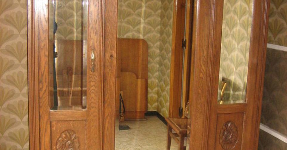 Deze degelijk gemaakte kast stond eertijds in de slaapkamer van grootmoeder en maakte deel uit van het slaapkamerameublement. Daarbij horen een bed, nachttafels alsook een toiletkast. De stijl van het ensemble is wat je best Volkse Art Deco kunt noemen. De kast stamt uit de jaren ’20, maar is een rustieke versie van de toen populaire Art Deco. Dit soort meubels wordt momenteel zeer laag geprijsd: 75 euro.