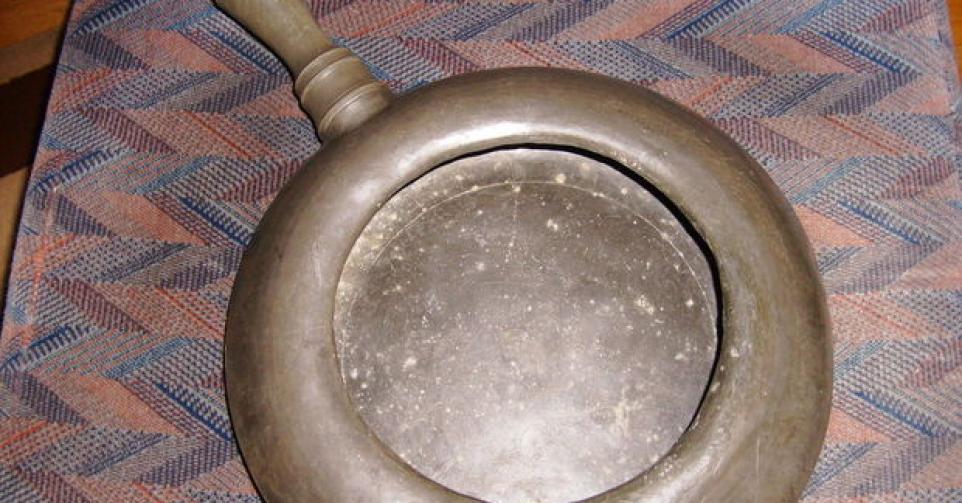 Zonder de merkjes kan ik het stuk niet thuiswijzen en is ook de waarde schatten moeilijk. Het gaat dus om een antieke, 19de eeuwse bedpan. De waarde hangt af van de merkjes. Van een alombekende Brusselse tingieter waarvan er veel tin op de markt is, is zo’n bedpan amper 40 euro waard. Maar stel nu dat de pan uit een minder bekend atelier en bovendien vervaardigd werd in een stad waar er amper tingieters actief waren en waarvan er amper stukken zijn bekend, dan loopt de waarde op. Bij tin speelt de zeldzaamheid zeker een rol.