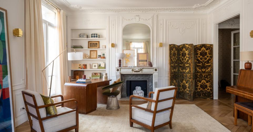 Het appartementsgebouw ligt in een straat die het Musée Rodin en het Musée d’Orsay verbindt, in een iconisch deel van het zevende arrondissement van Parijs. In een klassiek Haussmann-pand, compleet met sierlijsten en hoge plafonds. Maar het interieur van Morgane Sézalory, bezieler van modemerk Sézane, is uitgesproken hedendaags. Het meubilair stamt grotendeels uit de jaren 50 en later.