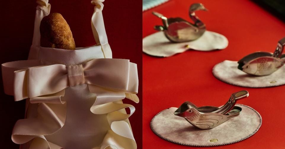 De comeback van zilverwerk, strikjes rond kaarsen of kanten kraagjes rond stokbroden, wijnflessen en appels? Reken maar dat Gohar ermee begon. ‘Vergelijk het met jezelf aankleden’, vertelde ze me ooit in een interview. ‘De tafel dekken is voor mij een manier om liefde te tonen aan mijn gasten.’ Door die aanpak mag ze vandaag Prada, Hermès, Comme des Garçons en Simone Rocha tot haar vaste klanten rekenen.