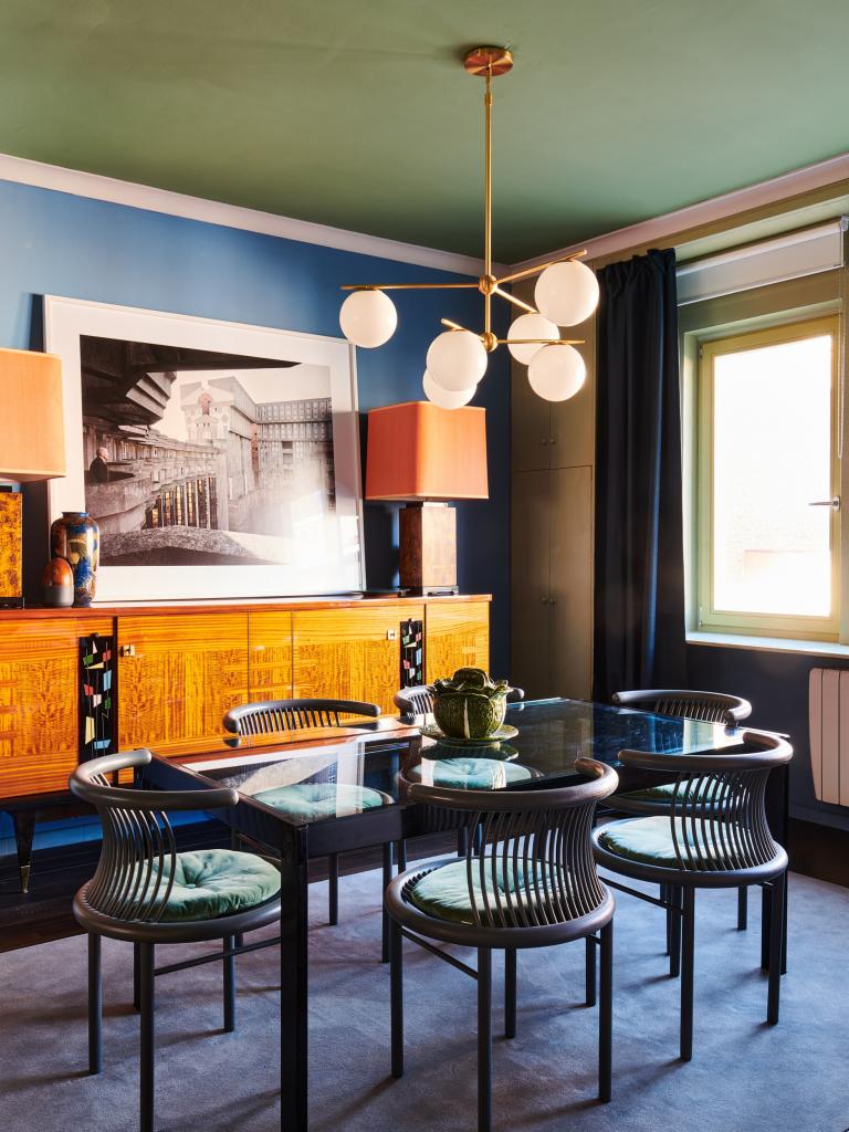 Wat meteen opvalt, is hoe kleurrijk en toch rustig het huis is: bordeaux, oranje, verschillende tinten blauw en groen… ‘We werken graag met typisch Britse kleuren’, legt Martyn uit. ‘Tegenwoordig zijn veel huizen wit, grijs of beige, maar doorheen de geschiedenis werden er zoveel prachtige tinten ontwikkeld. Dat erfgoed willen we eren.’