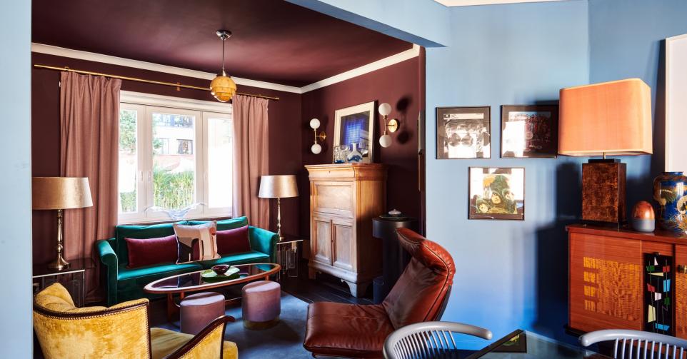 Wat meteen opvalt, is hoe kleurrijk en toch rustig het huis is: bordeaux, oranje, verschillende tinten blauw en groen… ‘We werken graag met typisch Britse kleuren’, legt Martyn uit. ‘Tegenwoordig zijn veel huizen wit, grijs of beige, maar doorheen de geschiedenis werden er zoveel prachtige tinten ontwikkeld. Dat erfgoed willen we eren.’