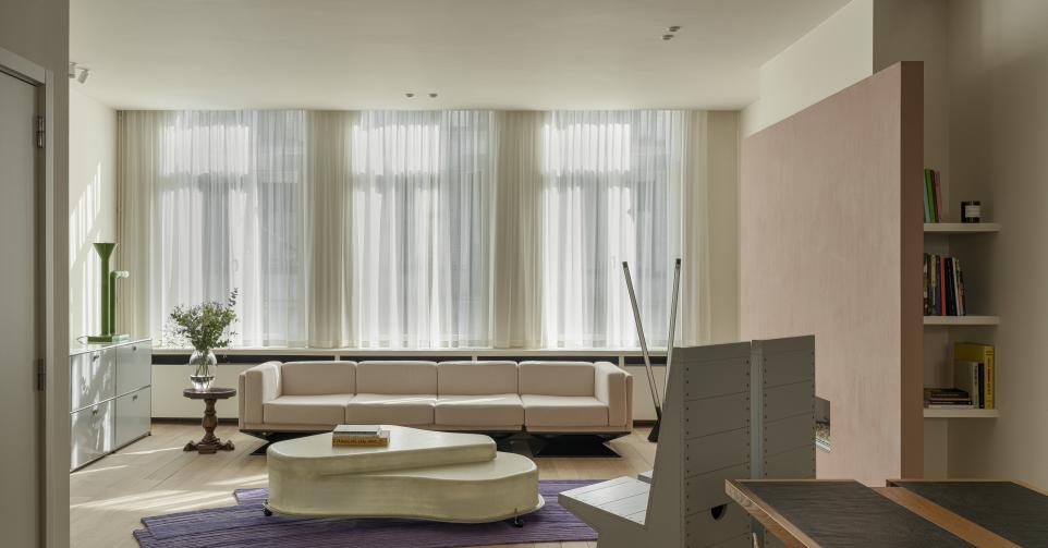 Het duo achter Contekst verbouwde de duplex boven de galerie. ‘Ik wilde een soort van opgeruimd, warm en speels maximalisme, met veel verrassingen; een plek waar ik meteen blij van zou worden.’
