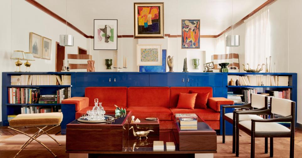 In dit Parijse appartement maximaliseerde Studio Akademos het effect van een wandspiegel in de eet- en zithoek. ‘Het appartement was veel langer dan diep. In onze zoektocht om de ruimte visueel te vergroten, bleek een grote spiegel de beste oplossing. Hij reflecteert het licht en brengt het diep in het appartement binnen’, zegt Aurélien Raymond, die samen met Costanza Rossi in 2020 Studio Akademos opstartte.