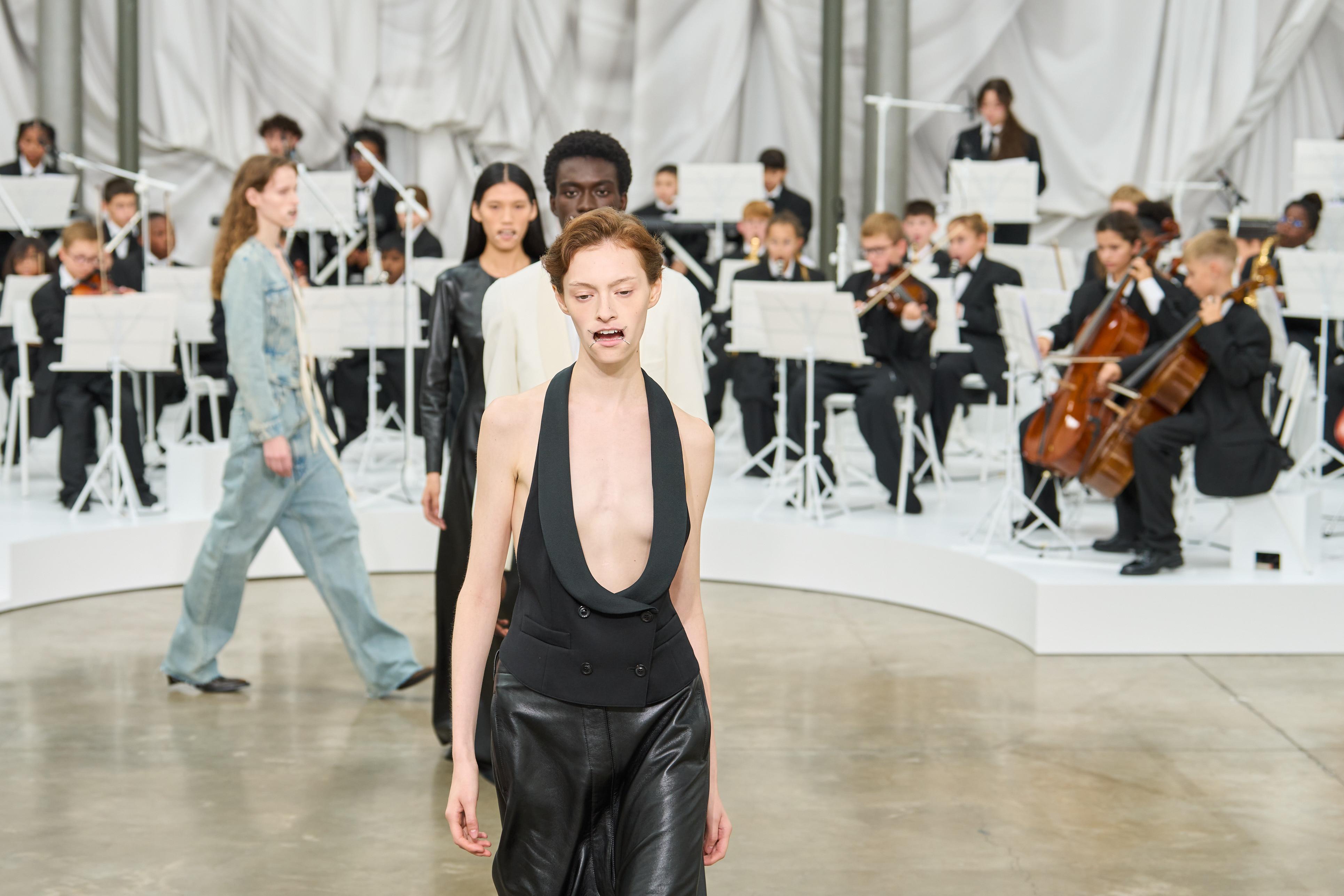 Die zogenaamde ‘dark mode shift’ – de term komt van cultureel analist Sean Monahan – zal volgens Vanderlinden goed voelbaar zijn in de mode. ‘Er was al Glenn Martens die voor Maison Margiela teruggreep naar Margiela’s iconische show uit 1989, met maskers die de gezichten van de modellen afschermden. Maar denk ook aan de opkomst van strengere silhouetten, sterke schouders en donkere kleuren, of aan de terugkeer van het maatpak, de mobster wife-look en militaire referenties. Kleding wordt een symbool van macht en autoriteit en tegelijk een schild tegen de boze buitenwereld.’
