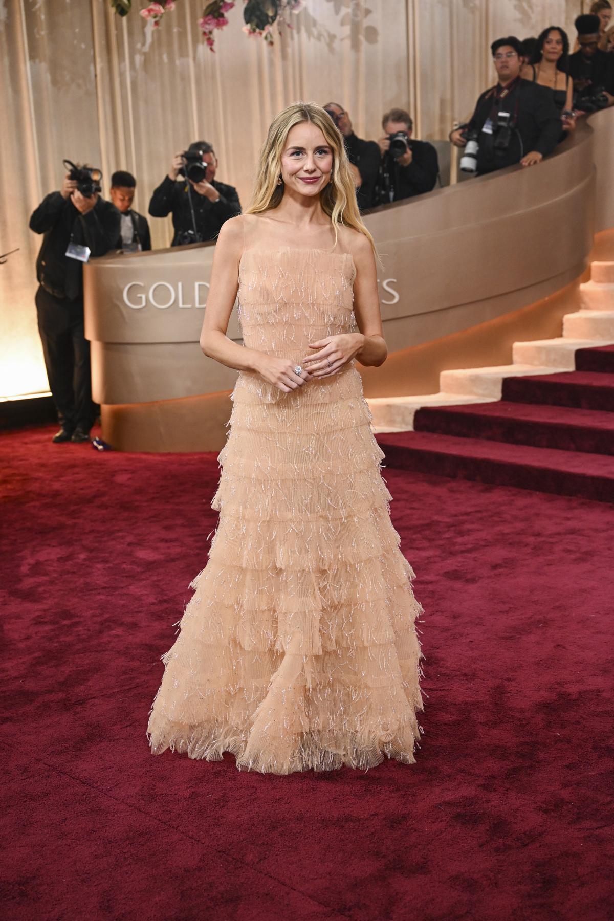 De Golden Globes waren namelijk meteen de eerste grote awardshow sinds de modewereld stevig door elkaar werd geschud: de Belg Matthieu Blazy werd creatief directeur bij Chanel, Jonathan Anderson kreeg de leiding bij Dior, Pierpaolo Piccioli verliet Valentino voor Balenciaga, Demna Gvasalia maakte de overstap van Balenciaga naar Gucci en Dario Vitale liet na Donatella Versace een creatief vacuüm achter bij Versace. Louise Trotter nam Blazy’s functie bij Bottega Veneta over en het designduo achter Proenza Schouler volgde Anderson op bij Loewe. Ook Sarah Burton maakte in 2025 haar debuut bij Givenchy. Die veranderingen vertaalden zich deze nacht naar de rode loper.