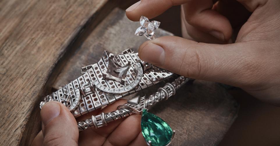 Louis Vuitton kreeg de Gemstone Prize voor het collier Apogée, een ontwerp in wit goud en diamanten met een Braziliaanse smaragd van 30,75 karaat.