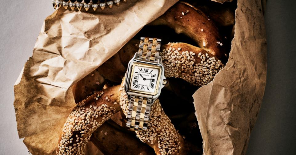 Armband ‘Clash de Cartier’ in roségoud en onyx, Cartier. Horloge ‘Panthère de Cartier in geelgoud en staal, Cartier. Ketting ‘Chloé meets Sweety’ in 18 karaat roségoud met smaragd, apatiet en diamaten, Bigli. © Wout Hendrickx