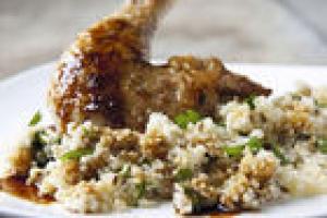 Haantje met couscous, koriander, komijn en blond abdijbier