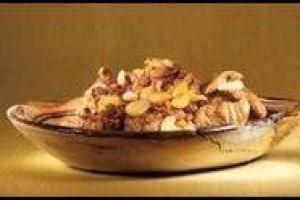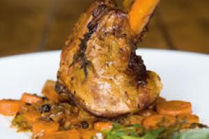 Gekonfijt lamsvlees met rozijnen en amandelen