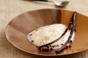Wittechocoladefondue met mascarpone, kardemom en rozenwater
