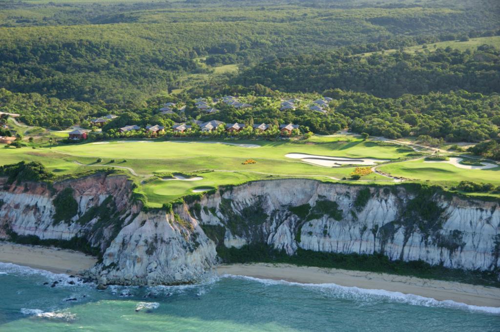 Trancoso in de Braziliaanse deelstaat Bahia evolueerde in de jaren negentig van een rustig visserstadje naar een luxueuze hotspot voor de jetset. Een golfbaan kon dan ook niet ontbreken: ze opende in 2004 en strekt zich uit over zeventig hectare, naar een ontwerp van Amerikaans architect Dan Blankenship. De locatie is hier niet alleen bepalend voor het uitzicht, maar ook je speelervaring. De eerste negen holes liggen immers in het regenwoud, met bijbehorende temperaturen en vochtigheidsgraad, terwijl de volgende dichterbij het strand en uiteindelijk pal op de bijna vijftig meter hoge kliffen aan de Atlantische Oceaan liggen. Een beetje ervaring met golfen in winderige omstandigheden kan hier dus van pas komen.