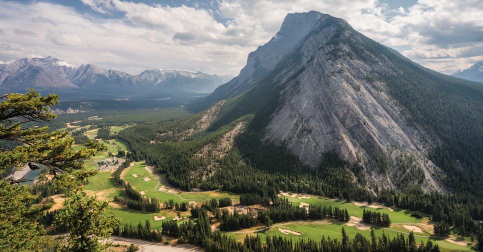 Woeste bergen, rivieren, meren en warmwaterbronnen lokken jaarlijks miljoenen bezoekers naar het Nationaal Park Banff in de Canadese Rocky Mountains. Naast wandelen en skiën is ook golfen hier populair. Dat is te danken aan het Fairmont Banff Springs, een iconisch, in Franse kasteelstijl opgetrokken hotel uit 1888. Het opende zijn eerste, uitdagende golfbaan langs de Bow-rivier al in 1927, naar een ontwerp van de vermaarde architect Stanley Thompson. Geen tijd om achttien holes te spelen? Dan is er sinds 1989 ook een korter parcours met negen holes beschikbaar, met nog altijd hetzelfde adembenemende uitzicht op Mount Rumble (2949 meter) en de omringende natuur.