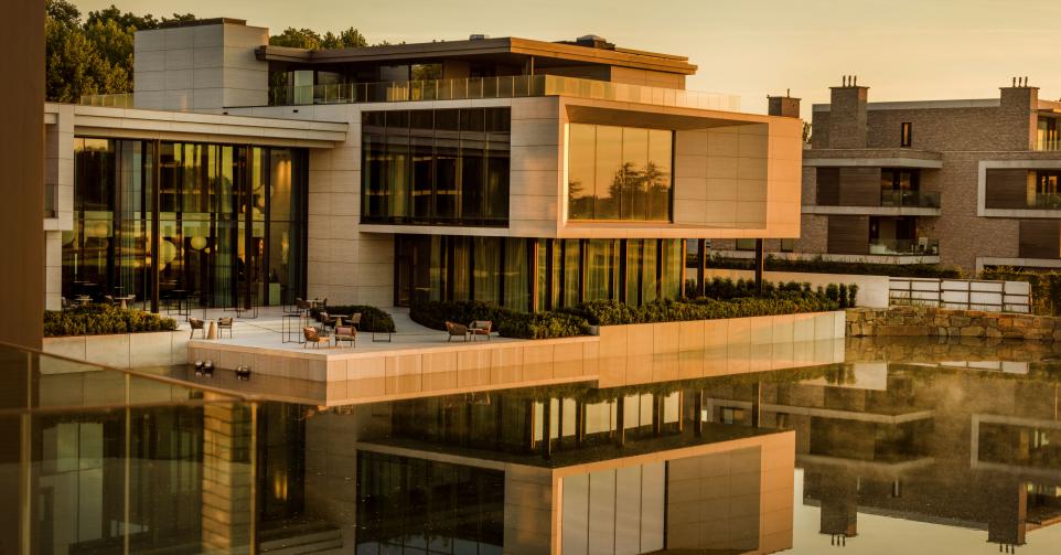Het hotel maakt deel uit van Sterea, een domein op de grens van Tervuren en Sterrebeek waar nieuwbouwwoningen, een luxehotel, sport en natuur in elkaar overvloeien. Dat alles zo mooi één geheel vormt, is de verdienste van SumProject Architecture & Engineering, onder leiding van architect Paul Lievevrouw, die zowel het hotel ontwierp als de omliggende woningen en sportclub.