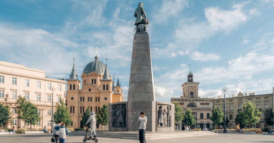 ‘In de jaren negentig van de vorige eeuw is de textielindustrie hier ingestort, een gigantische ramp voor de stad. Veel inwoners zijn toen vertrokken. Łódź was destijds de tweede grootste stad van Polen, inmiddels zijn we ingehaald door Krakau en Wrocław. Maar dankzij de herbestemming van Manufaktura, de gigantische industriezone van wijlen Izrael Poznański, leeft Łódź nu weer op.’