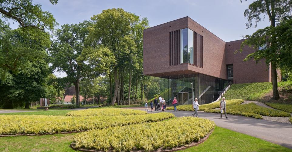 Het LAM museum laat zich niet meteen vinden – en dat maakt het juist zo bijzonder. Architect Arie Korbee ontwierp een subtiel statement: handgemaakte Deense bakstenen in herfsttinten, glas dat de bomen binnenlaat, en een gebouw dat lijkt te zweven tussen de takken. Van buiten discreet, van binnen een feest voor al je zintuigen.