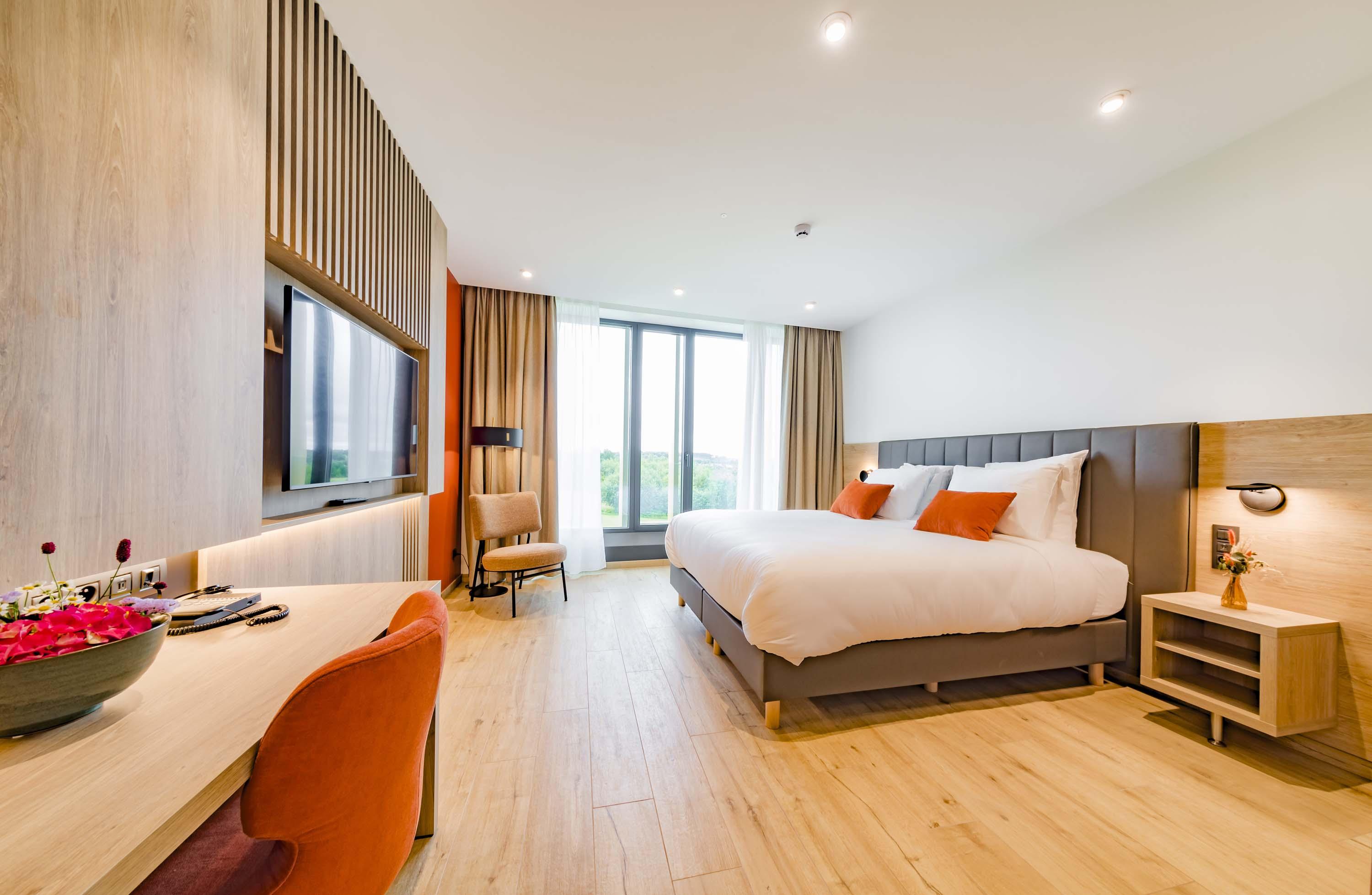 Zodra je het domein binnenrijdt, voel je de magie van de omgeving. Het hotel is omgeven door 220 hectare pure natuur, waar bossen, velden en glooiende landschappen elkaar afwisselen. De architectuur is modern en elegant, met grote ramen die een panoramisch uitzicht op de natuur bieden.